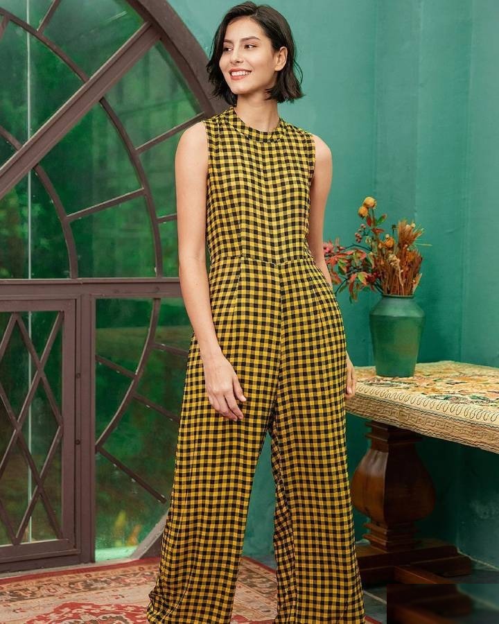 Cette combinaison à carreaux jaunes cérémonie femme incarne l’alliance parfaite entre modernité et raffinement. Sa coupe structurée et ses finitions soignées créent une silhouette qui ne passe pas inaperçue. Chaque détail a été pensé pour sublimer votre allure lors d’un invitée mariage.