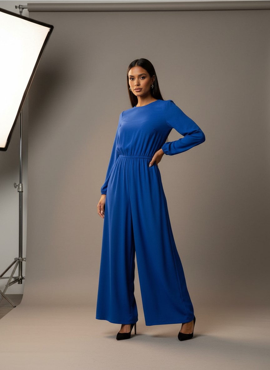 Cette combinaison ample manche longue incarne l’alliance parfaite entre modernité et raffinement. Sa coupe structurée et ses finitions soignées créent une silhouette qui ne passe pas inaperçue. Chaque détail a été pensé pour sublimer votre allure lors d’un cérémonie.