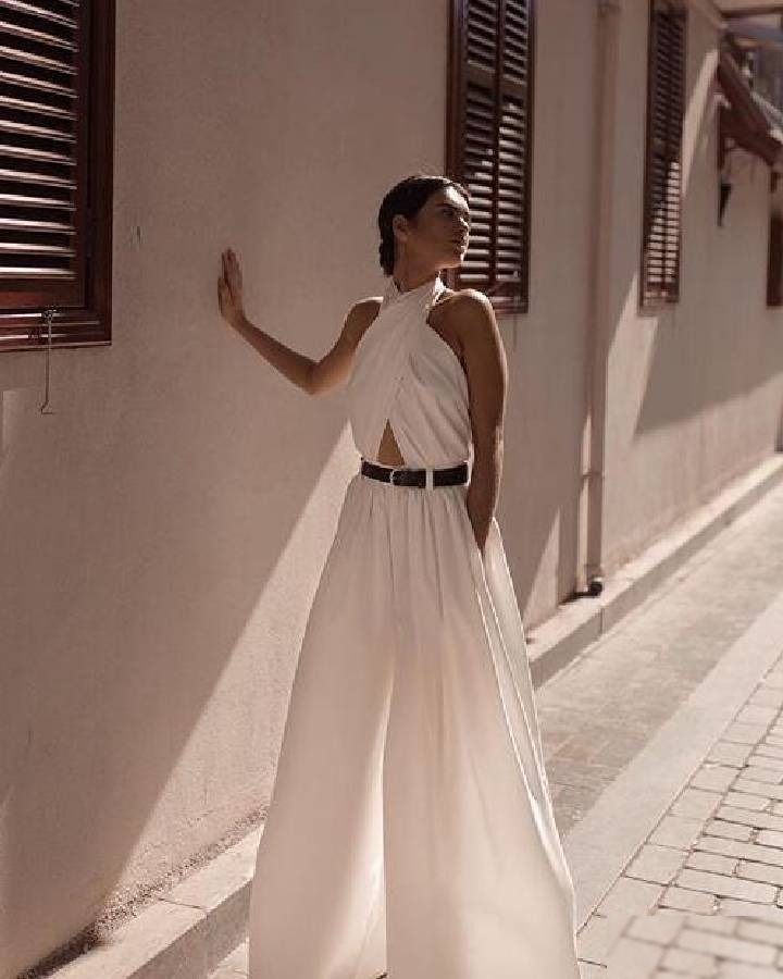 Cette combinaison blanche dos nu incarne l’alliance parfaite entre modernité et raffinement. Sa dos nu élégant et ses allure sensuelle créent une silhouette qui ne passe pas inaperçue. Chaque détail a été pensé pour sublimer votre allure lors d’un cérémonie.
