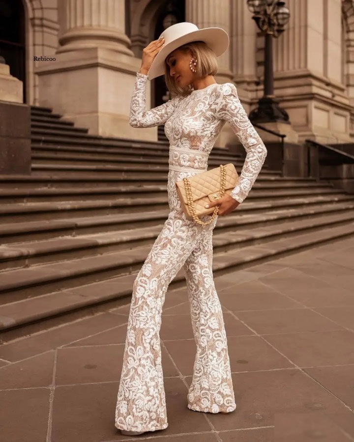 Une cérémonie approche et vous voulez une tenue qui sort vraiment du lot ? Cette combinaison blanche en dentelle allie raffinement et originalité. Pour la femme qui refuse de choisir entre confort et allure le jour J.