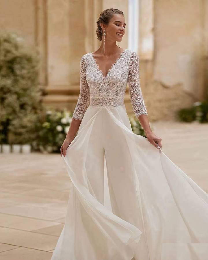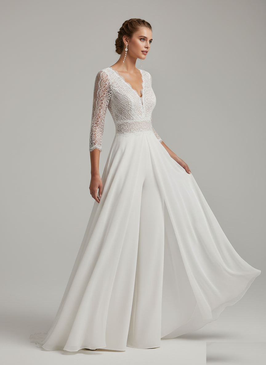 Cette combinaison de mariage civil en dentelle est l’alternative parfaite à la robe de mariée traditionnelle, offrant une allure chic et moderne pour ton…