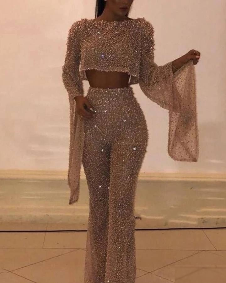Cette combinaison élégante ã paillettes incarne l’alliance parfaite entre modernité et raffinement. Sa paillettes scintillantes et ses éclat subtil créent une silhouette qui ne passe pas inaperçue. Chaque détail a été pensé pour sublimer votre allure lors d’un cérémonie.