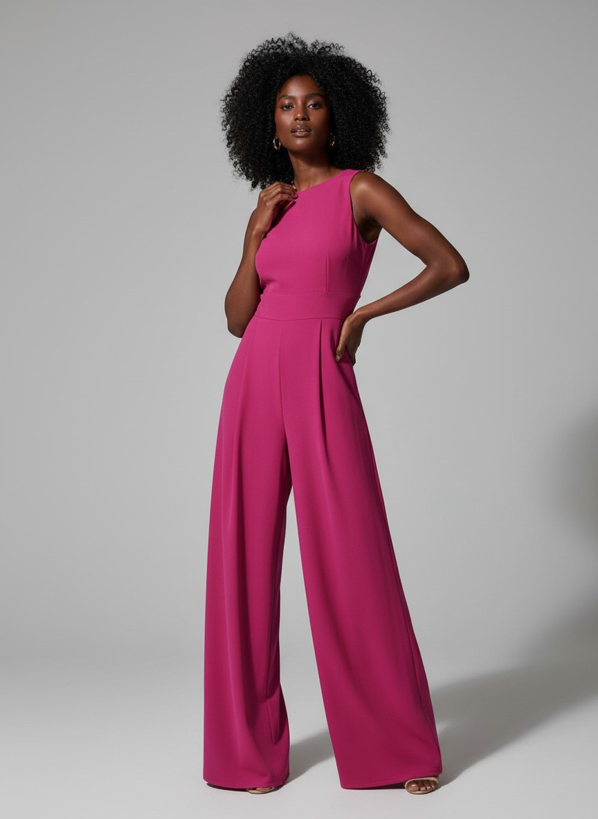 On connaît le bleu marine en blazer de bureau. Ici, c’est tout autre chose. Le polyester fluide donne à cette teinte classique une allure festive. La cape ajoute du mouvement et de la personnalité — vous ne passerez pas inaperçue en arrivant. La coupe est confortable : pantalon large, taille ajustée, buste structuré. Pas besoin de tirer, d’ajuster ou de replacer quoi que ce soit. Tout tombe juste.
