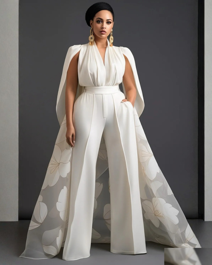 Cette combinaison grande taille mariage avec traine incarne l’alliance parfaite entre modernité et raffinement. Sa traîne amovible et ses effet haute couture créent une silhouette qui ne passe pas inaperçue. Chaque détail a été pensé pour sublimer votre allure lors d’un invitée mariage.