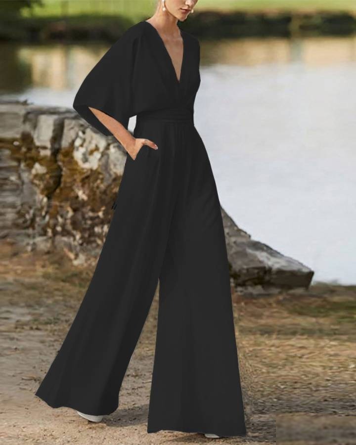 Cette combinaison noire fluide cérémonie femme incarne l’alliance parfaite entre modernité et raffinement. Sa coupe structurée et ses finitions soignées créent une silhouette qui ne passe pas inaperçue. Chaque détail a été pensé pour sublimer votre allure lors d’un cérémonie.