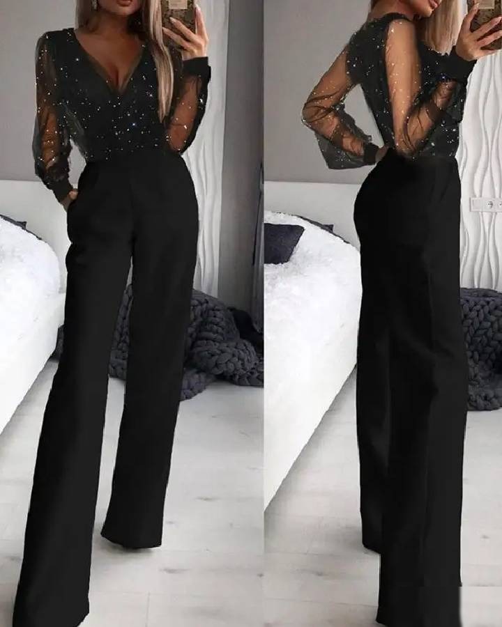 Confectionnée en polyester, paillettes (95% Polyester, 5% Élasthanne), cette combinaison offre un tombé impeccable et un confort absolu. Le style Glamour apporte une touche d’élégance intemporelle.